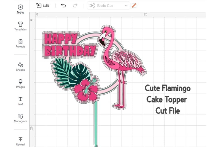 This adorable flamingo cake topper was made for my 5-year-old niece, and it uses most of the original SVG file elements.
